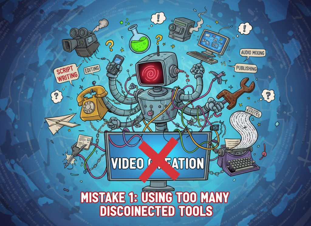 A common pattern: one tool for recording, a different tool for captioning, another for music, a fourth for export. Each handoff introduces friction, formatting inconsistencies, and opportunities for the process to break. Small teams that spread their create marketing videos with AI workflow across five separate platforms spend more time managing tools than making content.