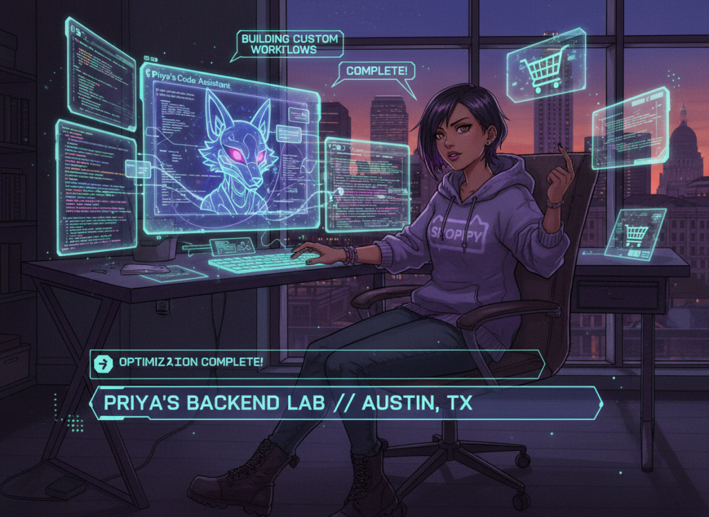 Persona 3: Priya — Shopify Store Owner in Austin Managing Her Own Backend Tools