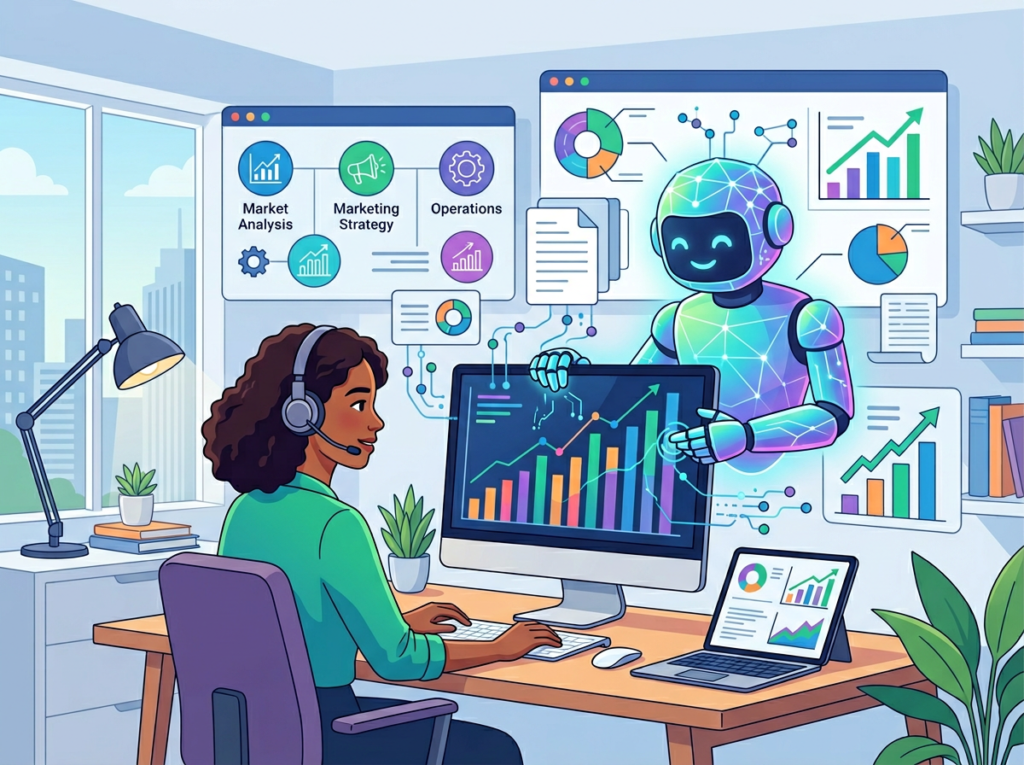 AI-powered workflow with LivePlan: Maria entered her pricing tiers, customer acquisition assumptions, and cost structure directly into LivePlan. The AI assistant helped her draft her market analysis and competitive positioning. Within ten days, she had a complete business plan, three-year P&L, and a pitch deck formatted for investor presentation.