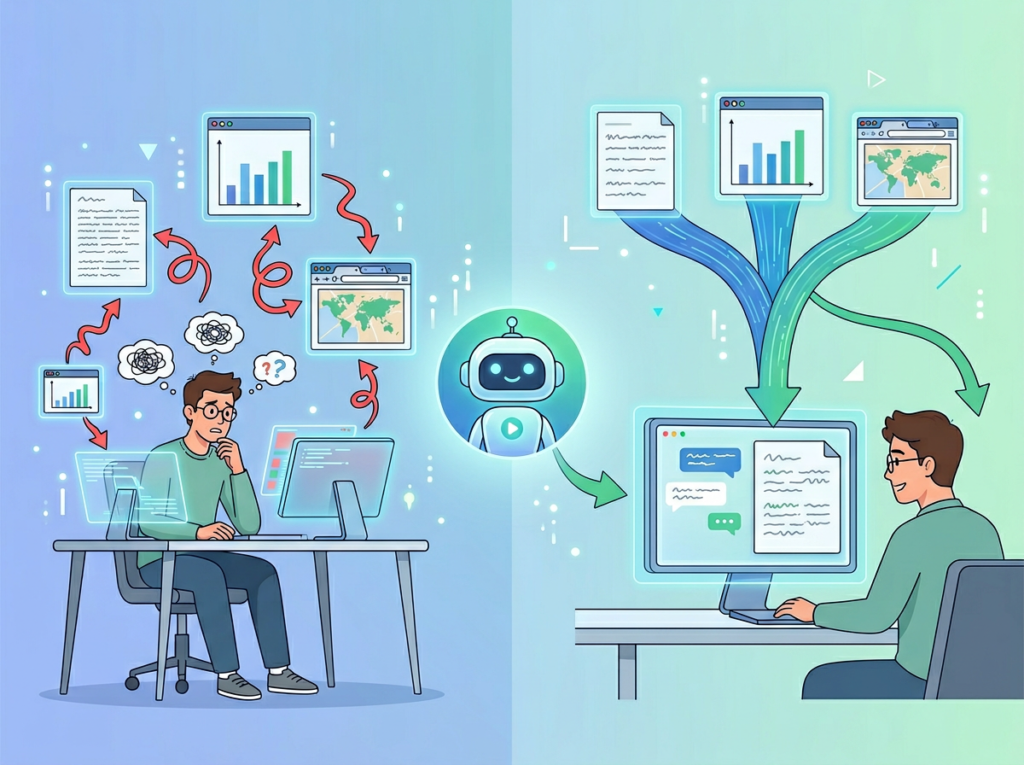 The lesson is that the problem isn’t the research itself — it’s the interruption pattern. An AI research tool that answers in one pass changes the entire rhythm of your workday.