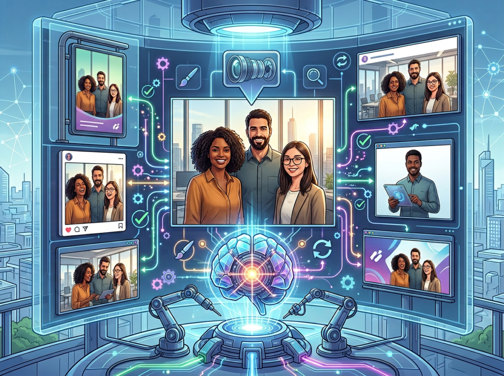 An AI image generator for marketing is a tool that creates original, publication-ready visual assets from text descriptions, eliminating the need to source stock photography, brief designers, or produce manual graphic designs for standard marketing applications like social posts, email campaigns, and landing pages.