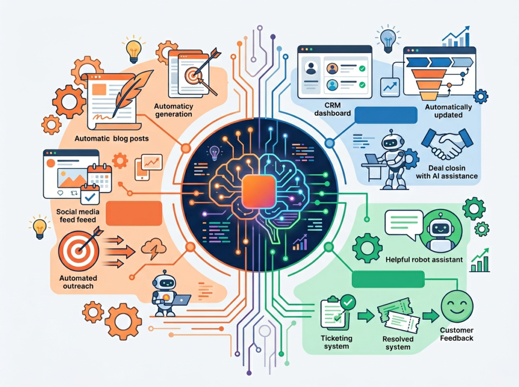 What is AI CRM for small business? An AI CRM for small business is a customer relationship management platform that uses artificial intelligence to automate lead management, personalize outreach, prioritize follow-ups, and surface deal insights — capabilities that previously required either a full-time sales team or many hours of manual work per week. For solo operators, an AI CRM functions as a virtual sales assistant that handles process-driven tasks so the business owner can focus on high-value conversations.