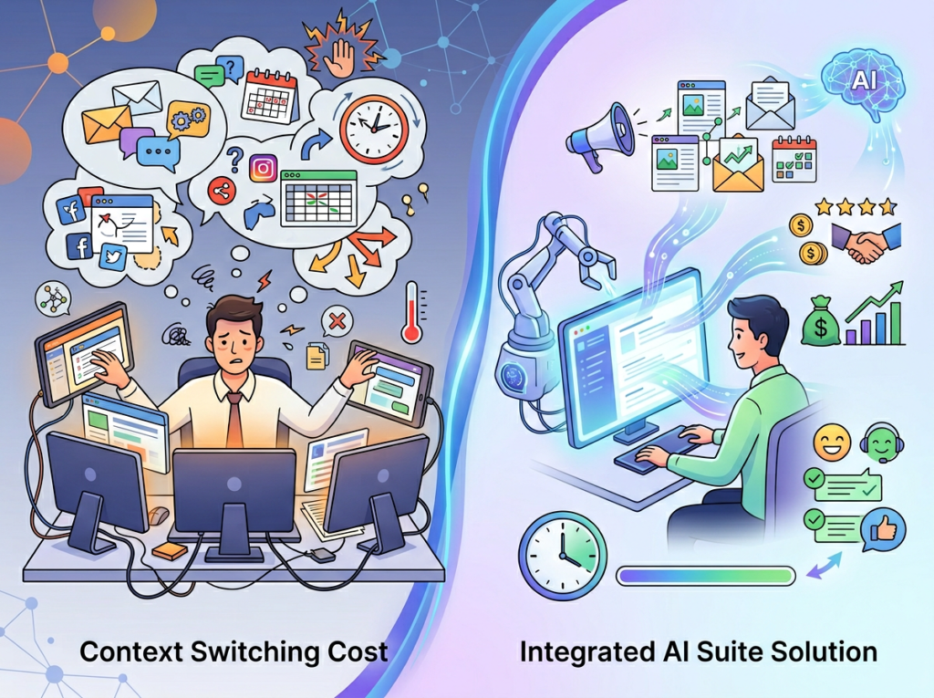University of California research has consistently shown that it takes an average of 23 minutes to fully regain focus after an interruption. In a sales environment, context switching is endemic: you’re mid-proposal when a lead replies, you jump to respond, then return to the proposal with half your mental model evaporated.