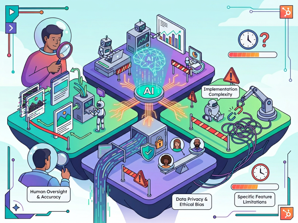 Key risks to manage actively: AI hallucination in factual claims, privacy considerations when syncing third-party data with CRM, and over-reliance that erodes your direct knowledge of your own pipeline. The most effective users treat HubSpot CRM AI as a system they actively manage — not a set-and-forget solution.