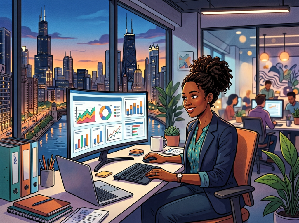 Persona 3: Aisha, Marketing Lead Standardizing Client Reporting — Chicago