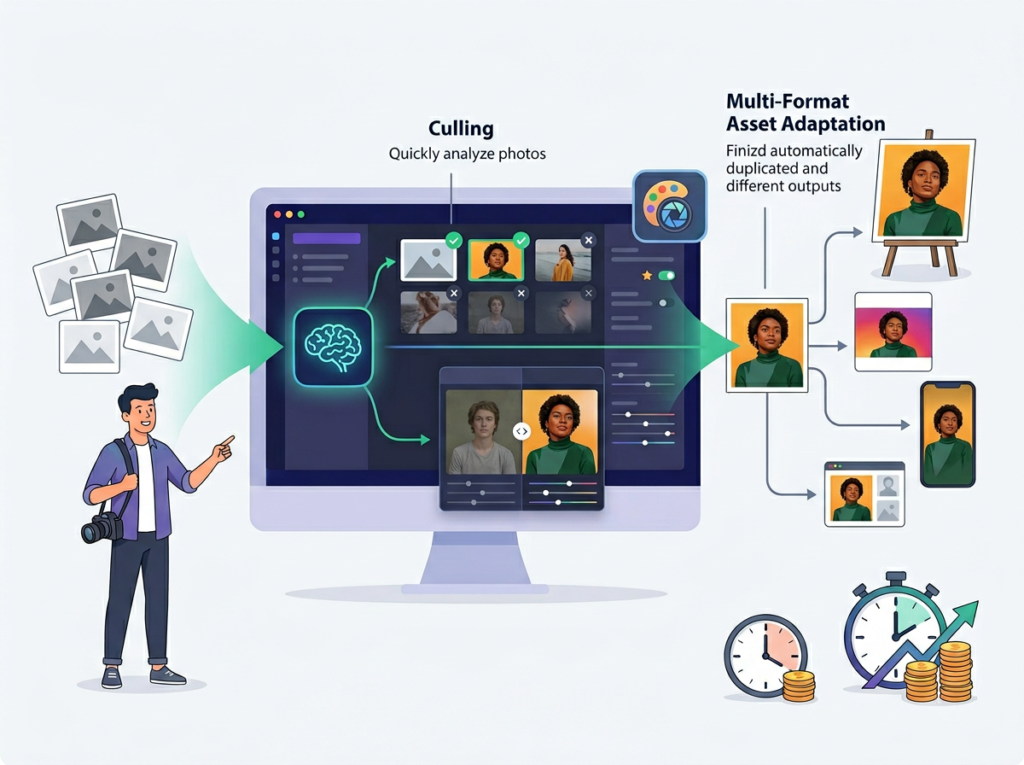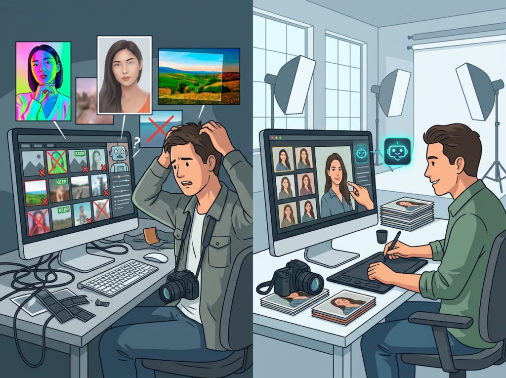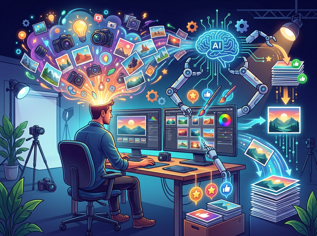 AI-powered workflow: James documented each client’s visual brand parameters as a reusable Imagen prompt template — essentially a brand brief translated into generative parameters. New content requests now go through a standardized generation workflow: prompt template + campaign brief ? AI generation batch ? human review ? client approval. As noted in this breakdown of photographer workflows with AI editing tools, AI systems that learn and maintain style parameters dramatically reduce revision cycles.