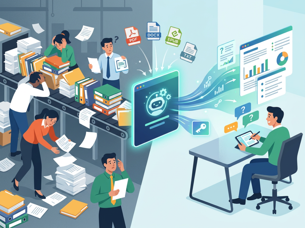 The traditional fix — hire someone to read and summarize documents, build knowledge bases manually, train staff on each new file — costs between $5,000 and $15,000 per documentation cycle in US labor alone, assuming a $75/hour blended rate across skilled knowledge workers. That’s a budget most five-person teams simply don’t have.