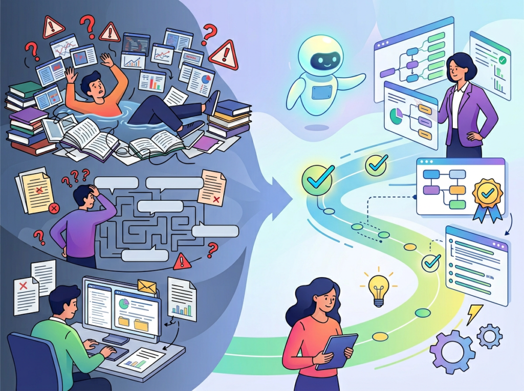 Solo DX is different from the broader “AI Efficiency” category in one important way: efficiency is about doing existing tasks faster. Solo DX is about turning one-off, founder-dependent actions into documented, transferable systems. The goal isn’t just speed — it’s institutional knowledge that doesn’t live exclusively in someone’s head.