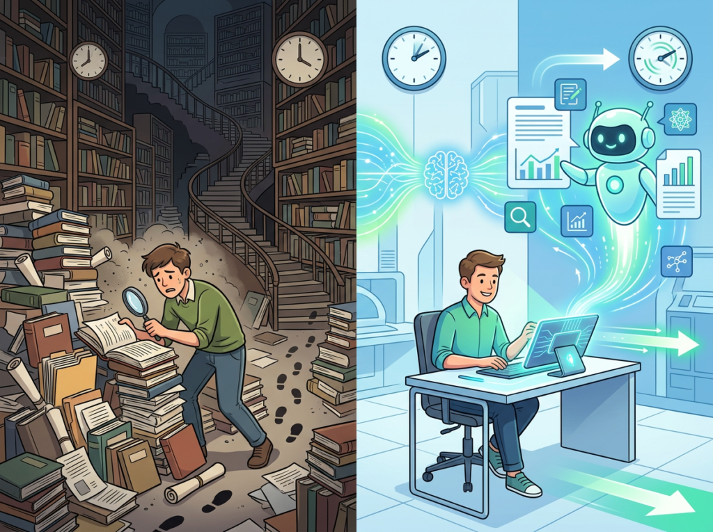 As noted in this analysis of AI research workflow transformations, reducing research time from 7+ hours to under 2 hours per session is achievable when AI is used as a structured research collaborator rather than a simple search replacement.