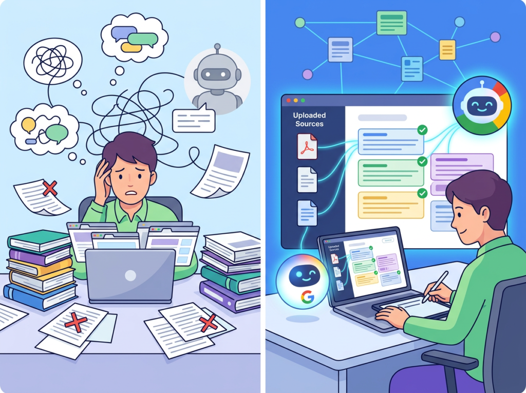 NotebookLM — Google’s AI-powered knowledge workspace — changes that math entirely. It transforms your existing documents, meeting transcripts, PDFs, and research into an interactive, searchable knowledge system that any team member can query in plain English. Unlike general-purpose AI chatbots that pull from the entire internet, NotebookLM works exclusively from the sources you provide, making its answers accurate, private, and directly grounded in your actual business.