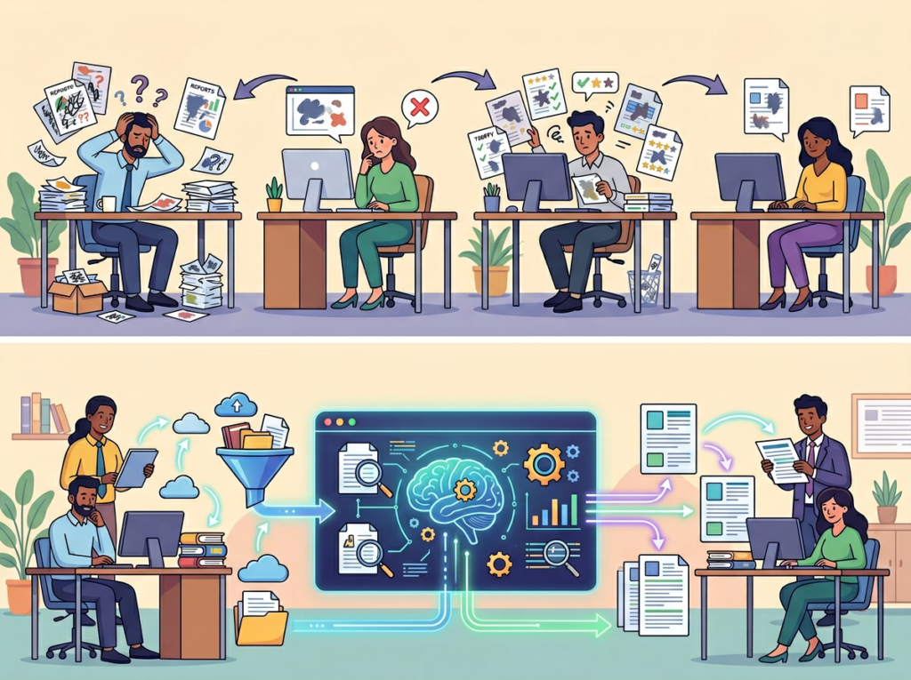 - Knowledge retrieval without AI: 15–30 minutes per employee query