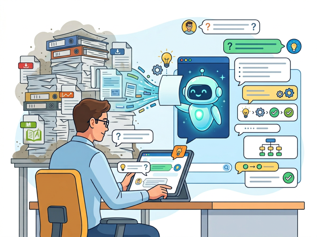 Old workflow: Maria spent 2–3 hours weekly hunting through a shared Google Drive folder of 80+ PDFs whenever she needed to reference a contract clause, pull a customer metric, or verify a compliance requirement. New hires received a “read through these 12 documents” onboarding instruction that nobody followed consistently.
