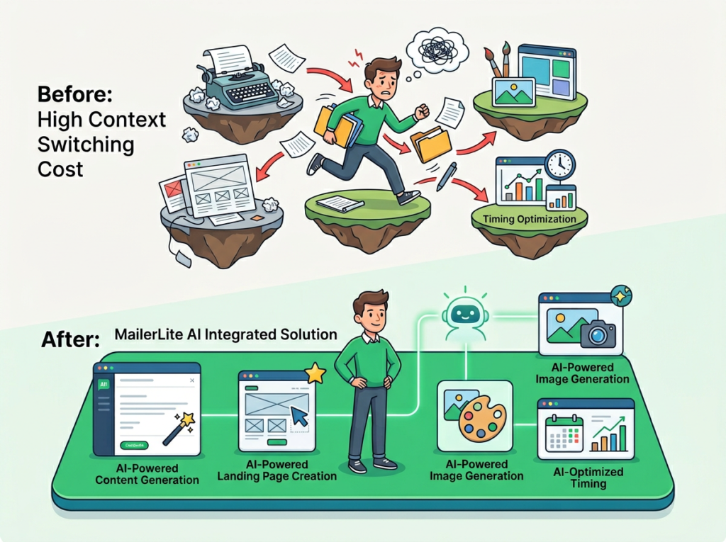 This is exactly the problem that modern ai email marketing tools are built to solve, and MailerLite AI sits near the top of that stack for solo operators and small teams. It’s not a magic button — but it is a thinking partner that can cut the cognitive weight of consistent email marketing by 40–60% for the right user.