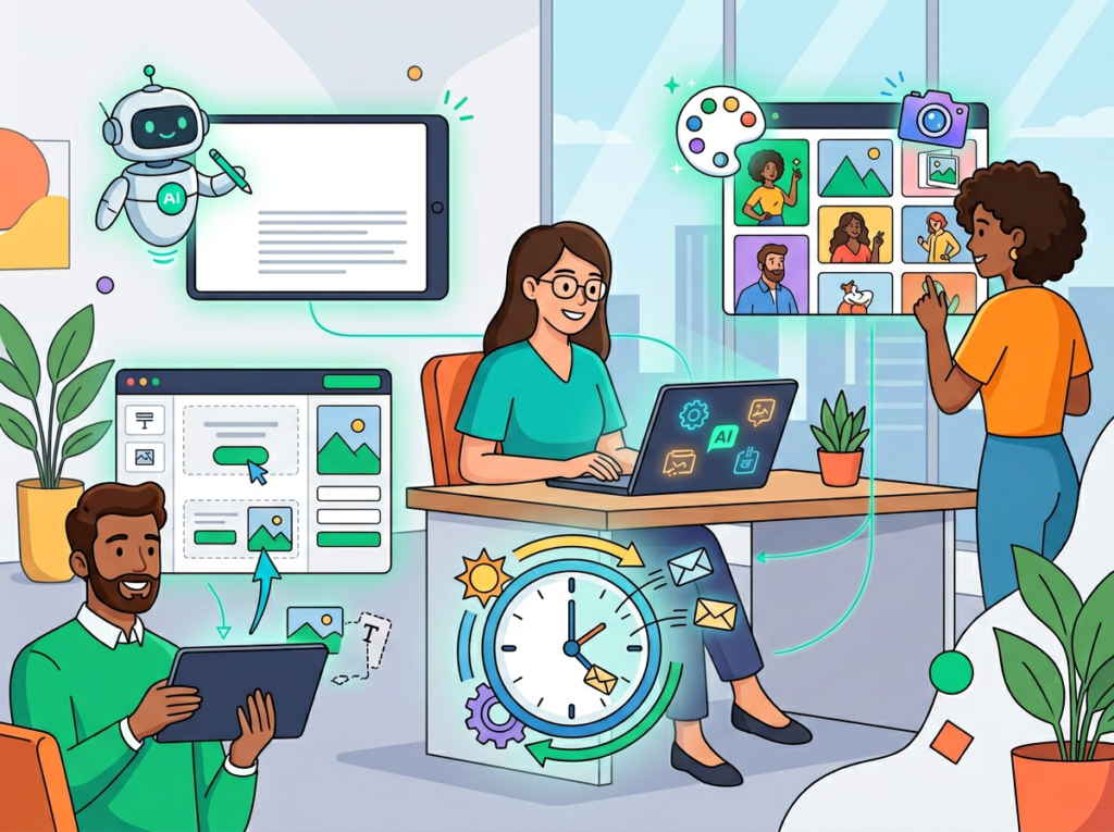 AI email marketing efficiency refers to using AI-powered tools to reduce the time and cognitive effort required to plan, write, design, and send email campaigns. For small businesses and freelancers, this typically means using AI writing assistants to draft copy, automation workflows to send sequences without manual intervention, and AI optimization tools to improve subject lines and send timing — freeing up 5–15 hours per month for higher-value work.