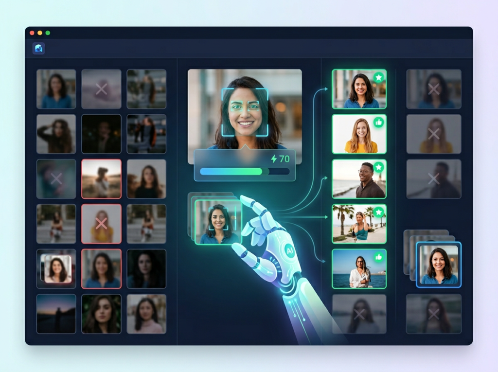 As noted in this detailed workflow breakdown on Fstoppers, Imagen’s Culling Studio addresses one of the most draining parts of the post-production pipeline. The system analyzes sharpness, groups near-duplicate sequences, detects closed eyes and expression changes, and applies customizable strictness settings so you control how aggressive the AI selection is.