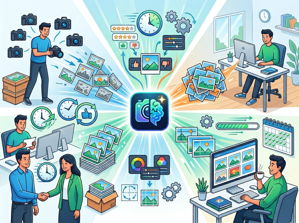 Efficiency ROI: Culling time reductions of 60–70% are typical. For a wedding photographer averaging 3,000 images per event: culling time drops from 3–4 hours to 60–90 minutes. Over a 20-event season: 50–60 hours recovered annually.