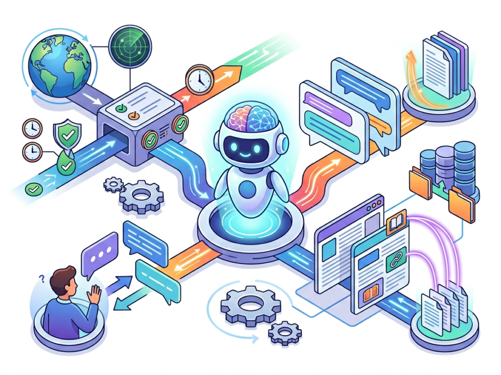 The most sophisticated use of an AI search engine for research isn’t a single query — it’s treating the tool as the first node in a repeatable research workflow. Workflow orchestration means designing a consistent sequence: Perplexity synthesizes the landscape, you evaluate what’s relevant, you ask follow-up questions to drill down, and you export the structured output into whatever deliverable comes next.