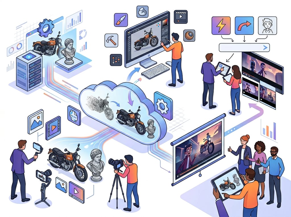 The broader principle at work here is workflow compression: using AI to collapse multi-step, multi-vendor processes into single-operator workflows. Where a product launch once required a photographer, a video editor, a 3D artist, and a motion graphics designer — each with their own brief, timeline, and invoice — AI 3D content creation tools allow a single operator to move through all four phases.