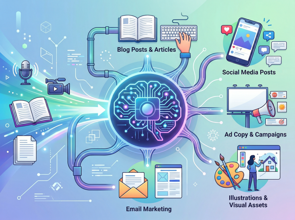 From creative freelancers to technical founders, AI efficiency transforms daily content workflows by automating repetitive production tasks and reducing the cognitive overhead of marketing.