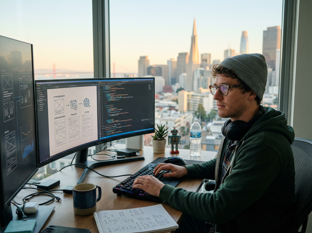 Background: Alex is building a B2B SaaS product solo. His core skill is engineering, but growing the product requires content: blog posts for SEO, cold email sequences, landing page copy, feature announcement posts, and social media presence. He has strong opinions about his product but struggles to translate technical thinking into compelling marketing language.
