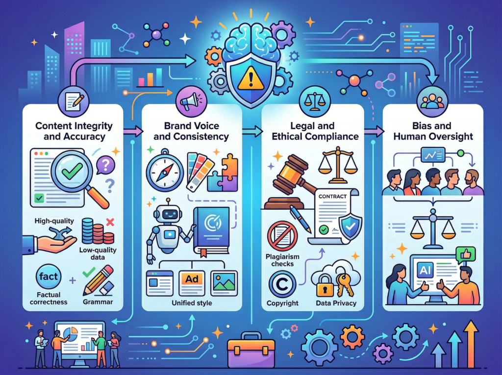 AI content generation is a first-draft accelerator, not a publish-on-autopilot system. Every piece of Jasper-generated content should pass through human review before it reaches your audience — not because Jasper makes frequent errors, but because brand nuance, current events, and relationship context require human judgment.