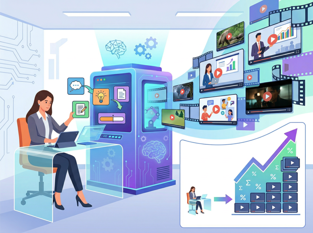 InVideo AI Approach: The marketer maintains a library of brand prompts (tone, visual style, target audience) and uses InVideo AI’s batch creation workflow to generate multiple video variations from a single content brief. A product launch that previously required 3–4 hours of editing can be executed in 45–60 minutes. The AI selects relevant stock footage, applies branded captions, and outputs platform-specific formats automatically.