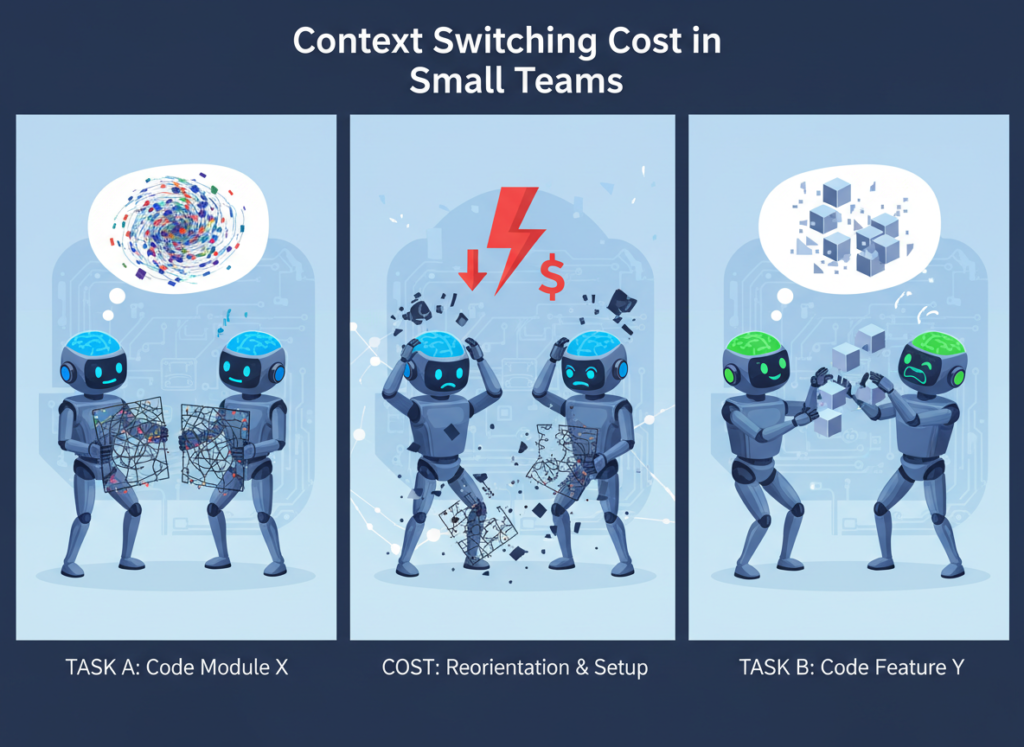 Small teams are especially vulnerable here. When your team has three engineers and two are deep in feature work, the third becomes a de facto help desk: answering questions from marketing, reviewing PRs, jumping into incidents. Every context switch is a tax on deep work.